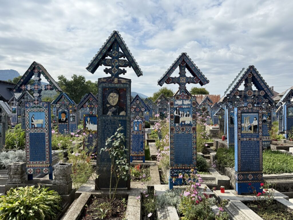 Honestly speaking, when we planned to visit the Merry Cemetery during our round trip through Romania, I didn’t know what to expect. How could a cemetery be ’merry’? But when we finally visited Sapanta, I understood why this cemetery is unlike any other in the world. Just imagine: a cemetery without grey granite headstones and memorials, but with 800 colorful wooden crosses, decorated with naive paintings and epitaphs that reveal the stories of people’s lives – sometimes ironic, sometimes painful, but always as a celebration of a life that ended.