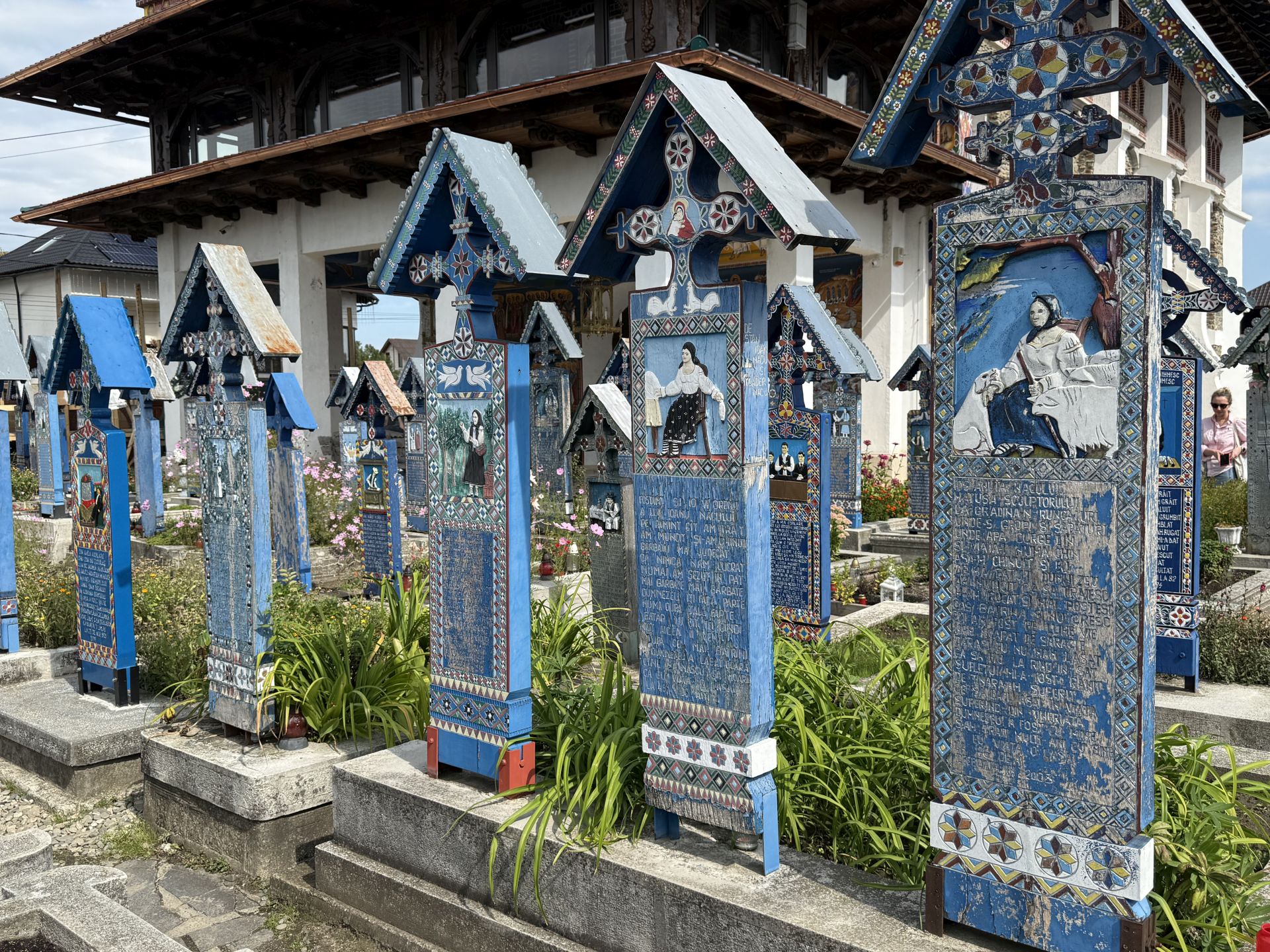 The first thing that surprised me was the explosion of colors in folk-art style, with ’Sapanta blue’ as the basic color. Each cross was telling a life story that was meant to be read and remembered for generations.