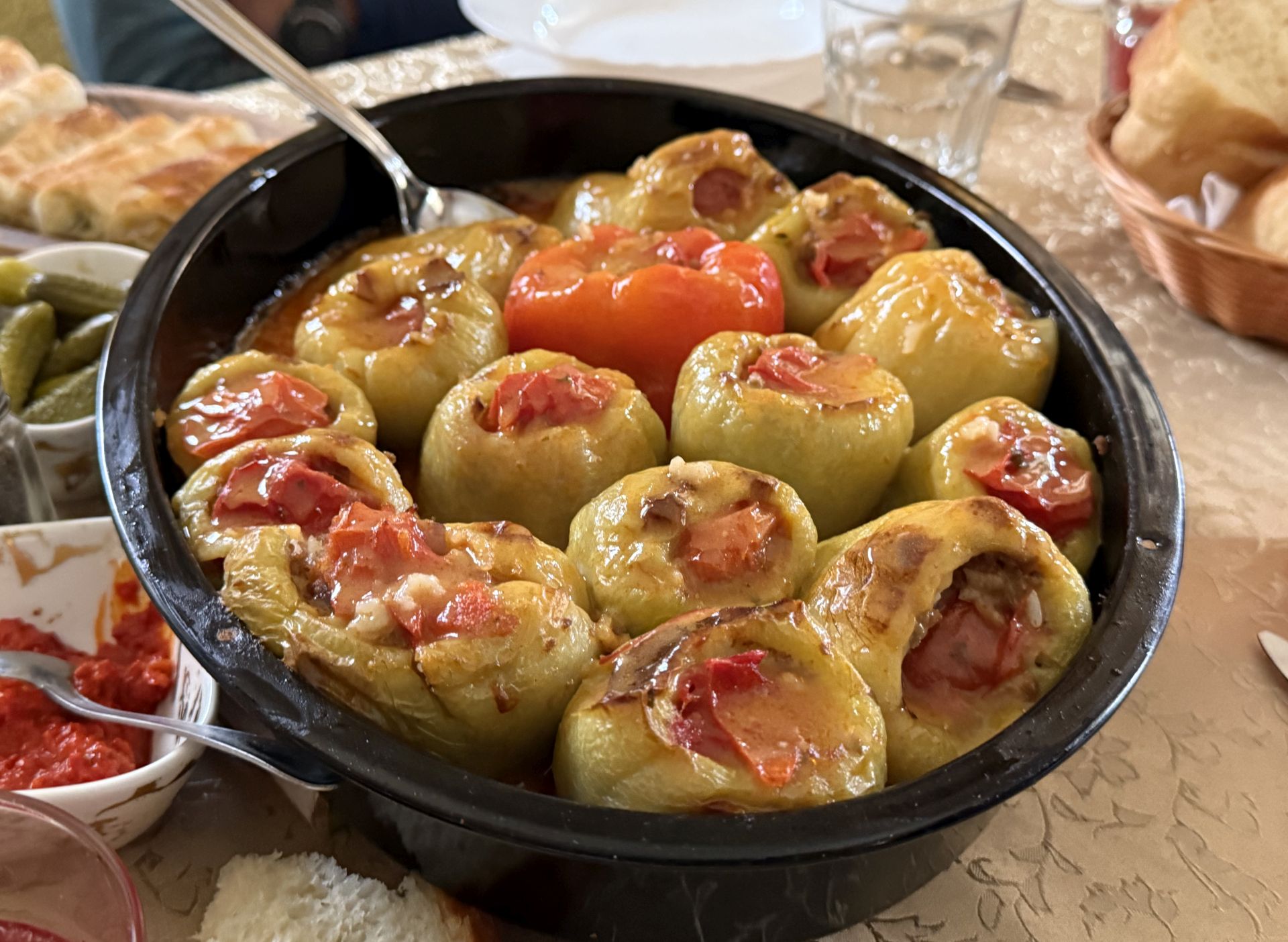 By the way, a special experience was offered by Sanja Simonović Delević from rural household ‘Medeni Brijeg’ in Berane. She showed us how to cook stuffed peppers and ‘pita’. We picked the vegetables directly from her garden and participated in the cooking process. It was real fun! The participants in the trip looked with admiration how Sanja prepared the dough for ‘pita’ and we were especially astonished when our colleague Matteo succeeded in making a ‘pita’ by himself.